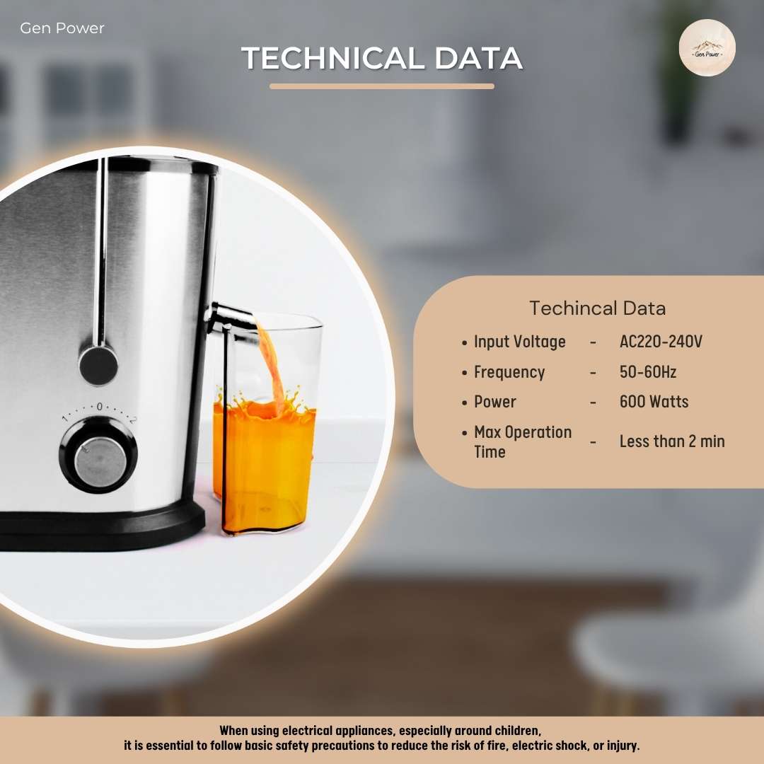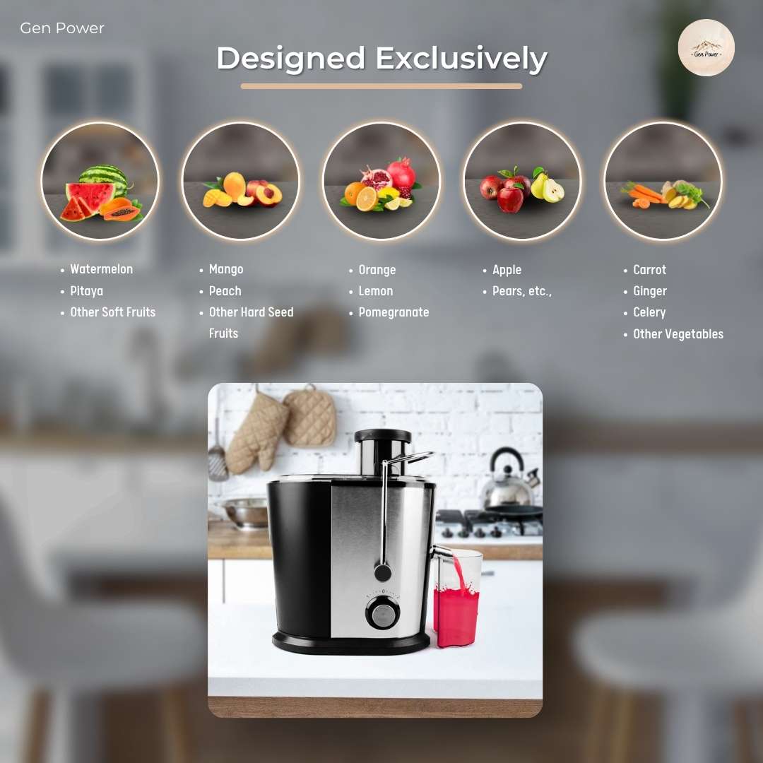 Usage: Perfect for extracting fresh, healthy juice from any fruit or vegetable with minimal effort.